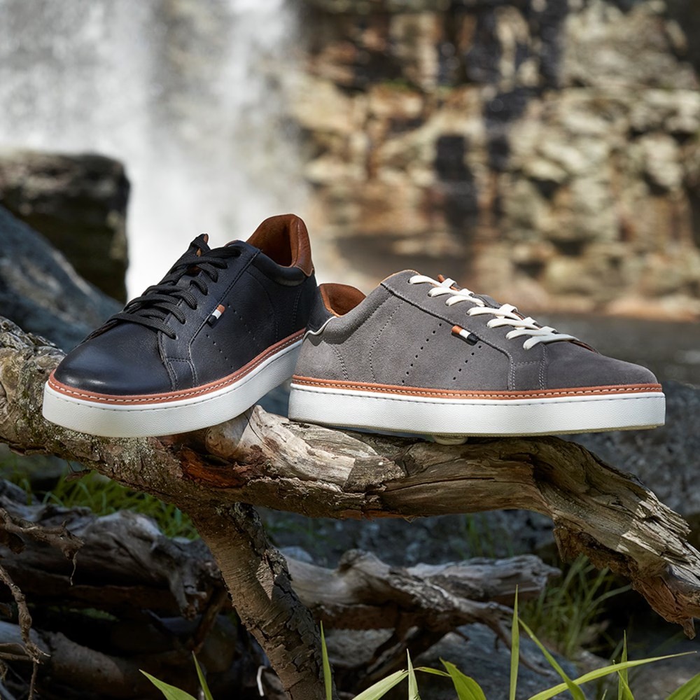 - Contrasting full-grain leather accents at heel and tongue